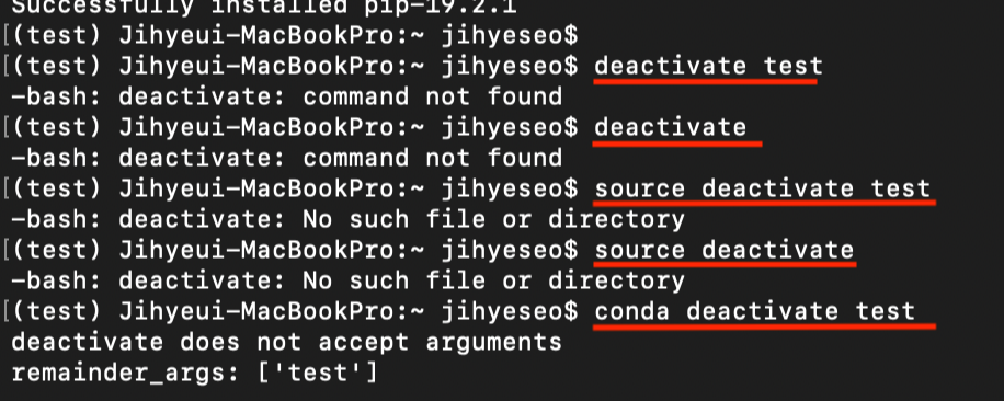 - 시도 5 > conda deactivate test