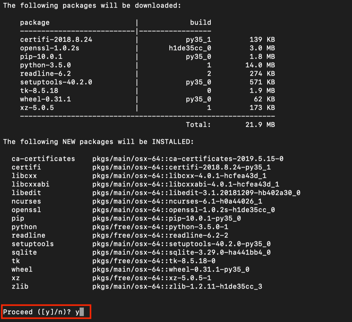 | 설치되는 패키지 확인 : y 입력 > 엔터