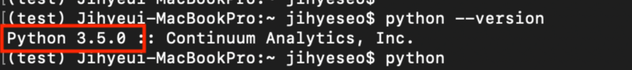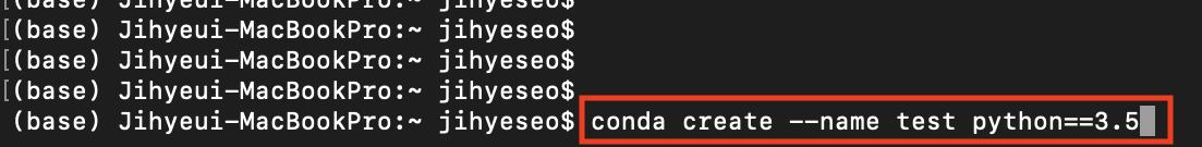 예시 > conda create --name test python==3.5