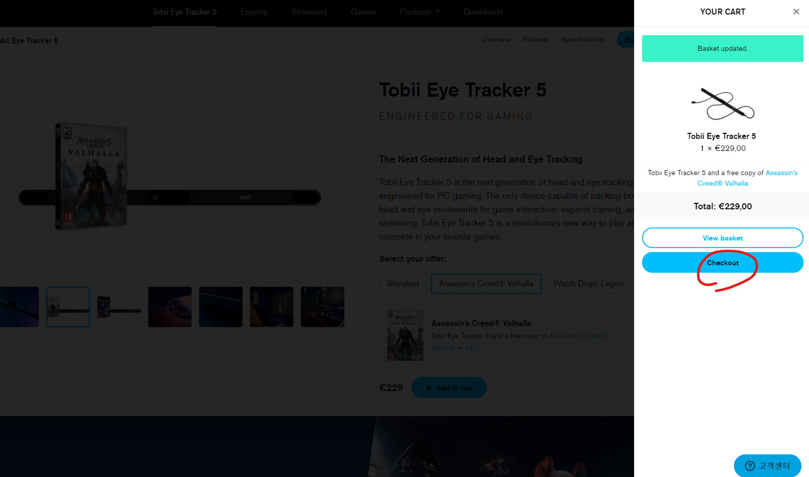 구매할 제품과 가격이 나옵니다. 현재(2020.10.26 기준) 229 유로네요.