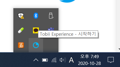 오른쪽 아래에 숨겨진 아이콘 표시를 눌렀을 때 파란색 눈동자같은 아이콘이