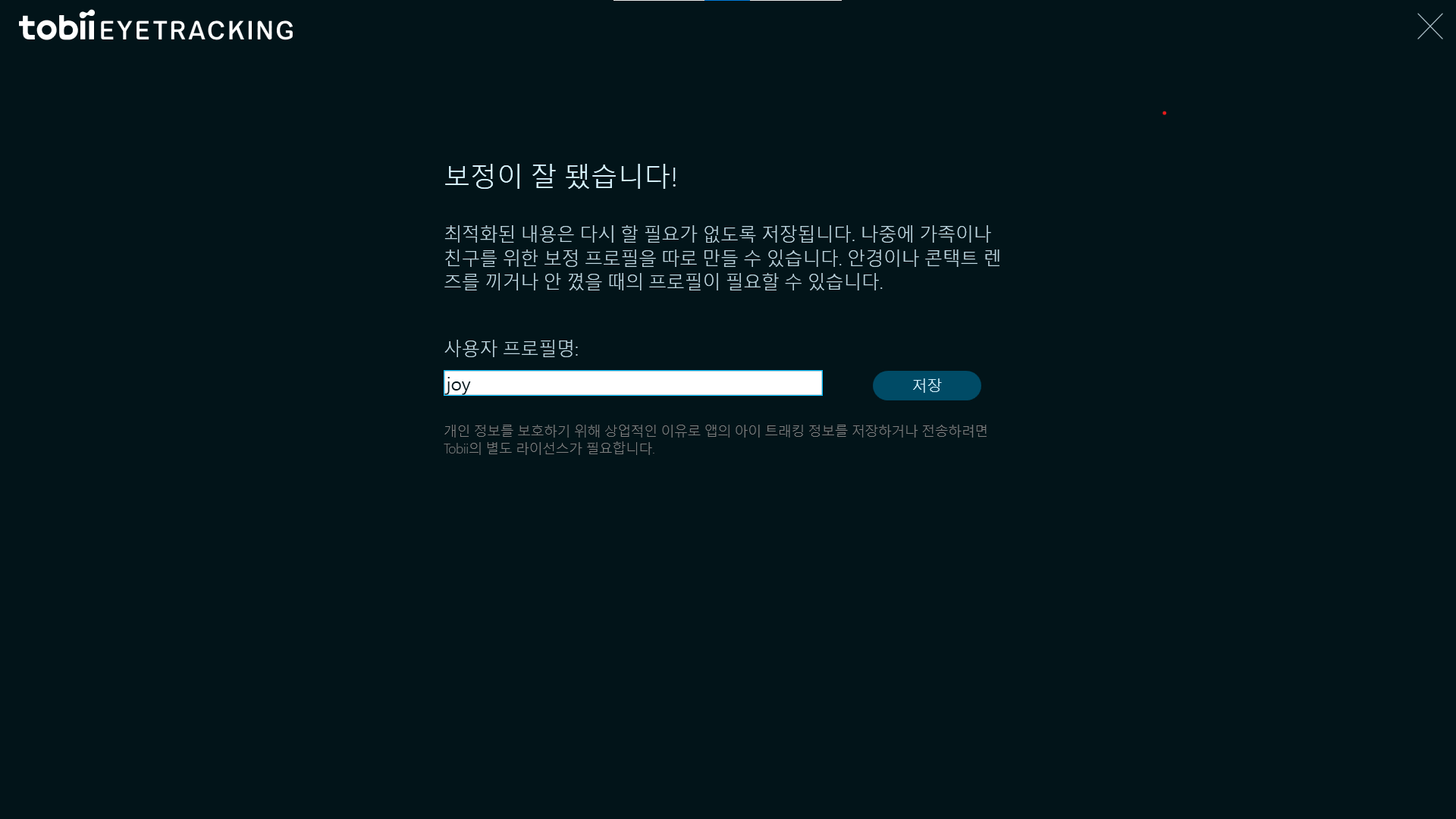 순서대로 따라하다보면 사용자의 시선에 보정이 완료된 것이고