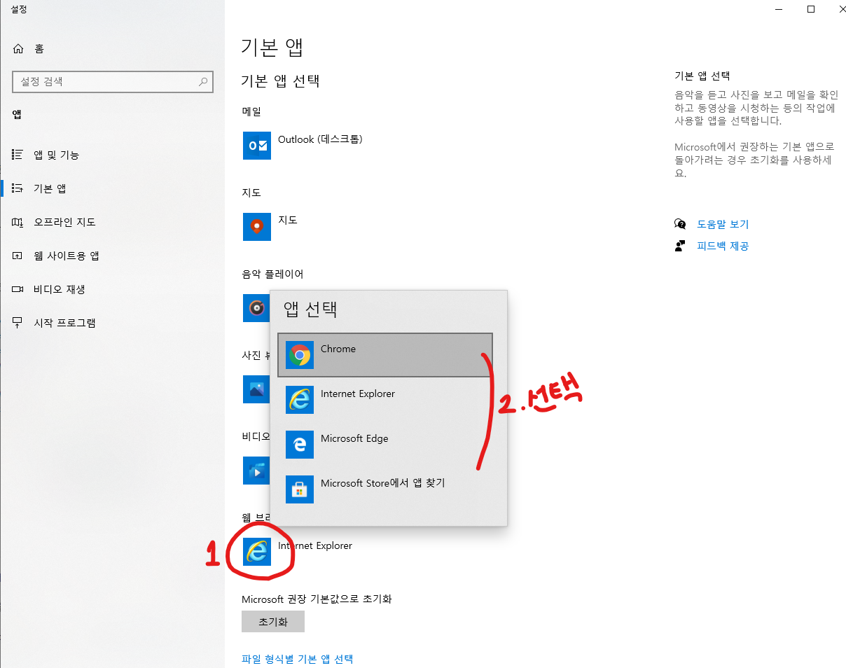 다양한 웹브라우저 선택지가 뜹니다. 원하는 것으로 선택해 주세요.