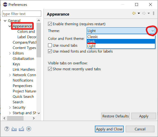 Light로 되어있는 것을 Dark로 변경해 줍니다.