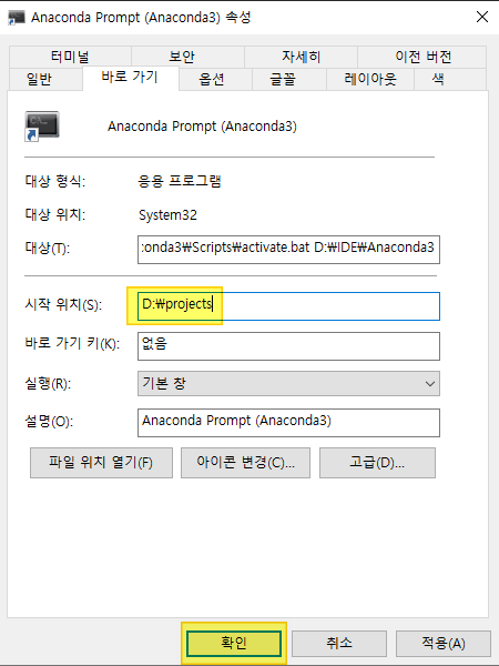 prompt가 C:/말고 D:/ 밑에서 실행되야해서 방법을 찾아 포스팅을 하게 되었다.