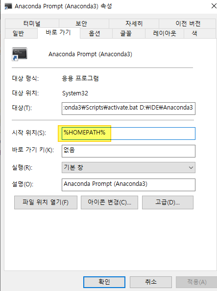 prompt가 C:/말고 D:/ 밑에서 실행되야해서 방법을 찾아 포스팅을 하게 되었다.
