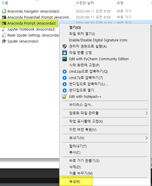 python 파일을 실행해 보는데 anaconda prompt를 사용하고 있다.