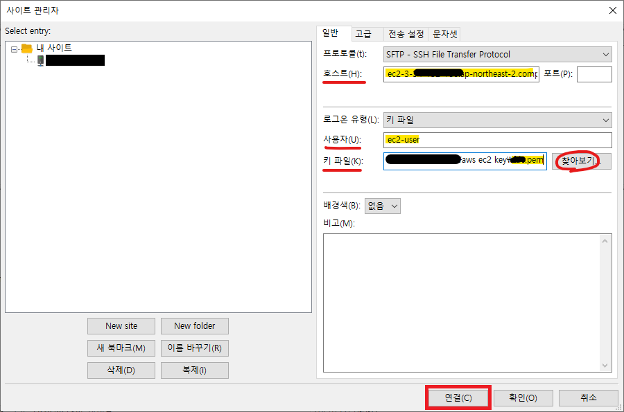 연결하려는 EC2 인스턴스의 퍼블릭 IPv4를 복사해서 호스트에 붙여넣는다.