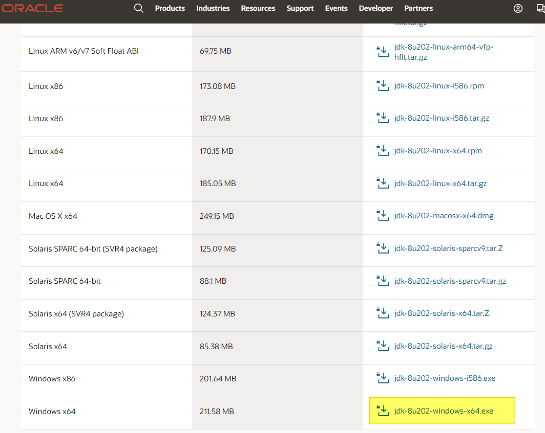 2. 원하는 버전과 os에 맞게 설치파일을 다운로드한다.