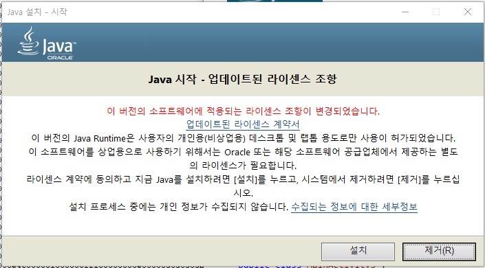 오라클 정책 변경으로 유료 Java SE(JRE/JDK)를 다운받거나 업데이트 했다면