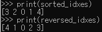 이미 list를 numpy 배열로 변환한 a_np를 사용하여 numpy의 argsort 함수를 이용한다.