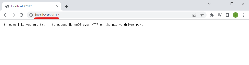 그리고 웹 브라우저 주소 창에 localhost:27017 입력해 보면,