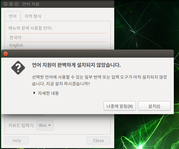 언어 지원 메뉴를 클릭해 주세요.