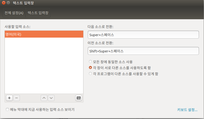 한/영이 안되니 너무 불편해서 셋팅을 해주려는데