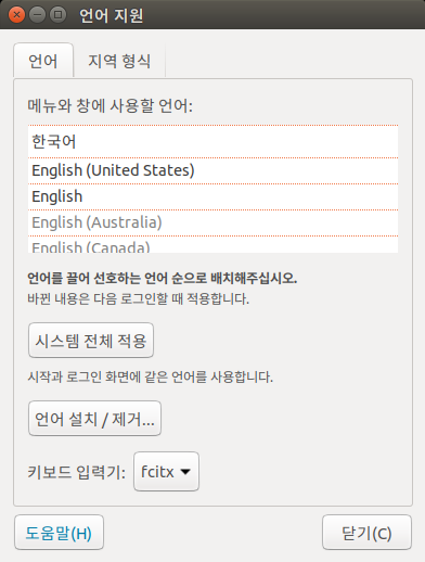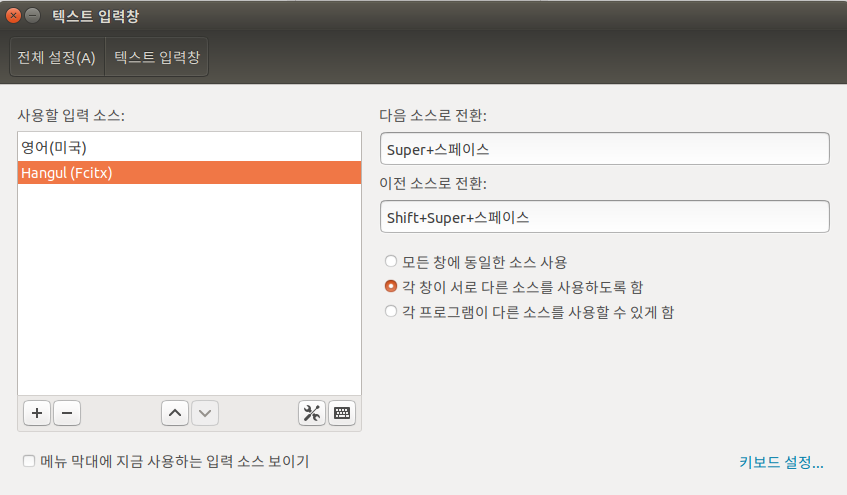 그리고 키보드 입력기는 fcitx 로 선택하세요!