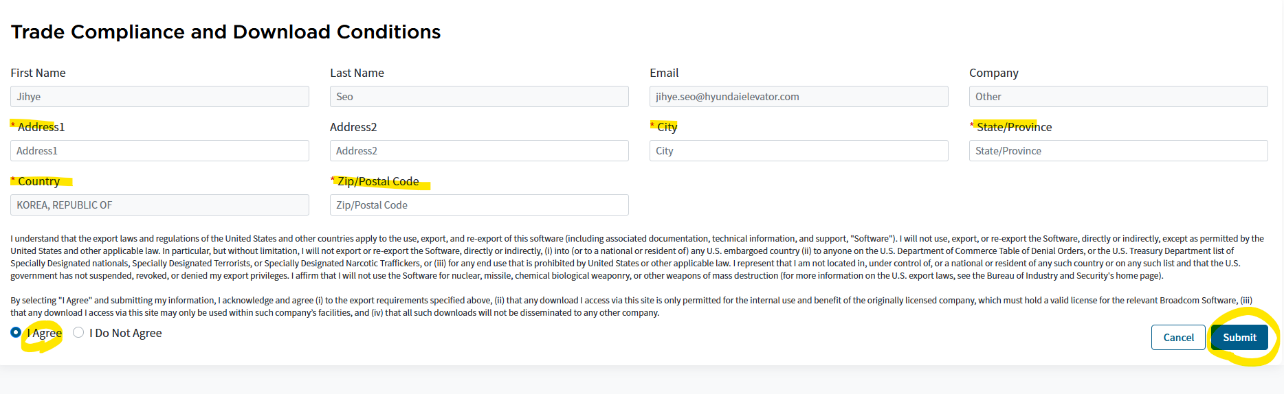 - 동의함에 체크 표시 후 , 다운받는 클라우드 아이콘 누르면