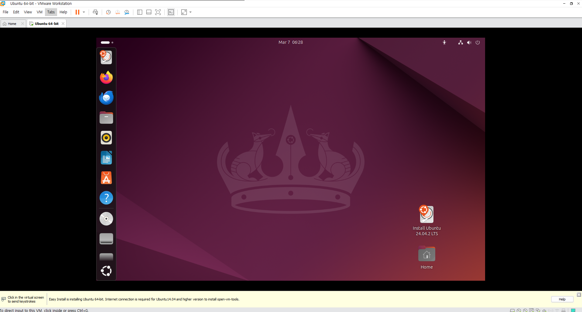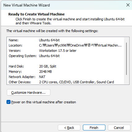VMware를 먼저 설치 하신 후 우분투를 설정해야 합니다.
