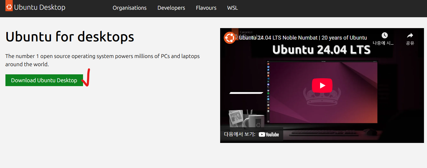 VMware를 설치하셨다면, 아래 우분투 사이트에 접속합니다.