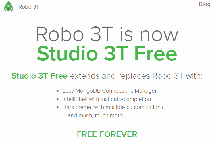 Studio 3t 가 무료가 되면서 따로 Robo 3t를 제공하지 않는 것 같아 보였다.