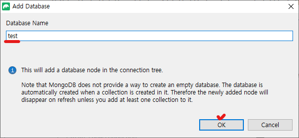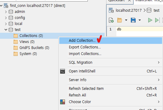 해당 DB 하위 > Collections 우클릭 > Add Collection...