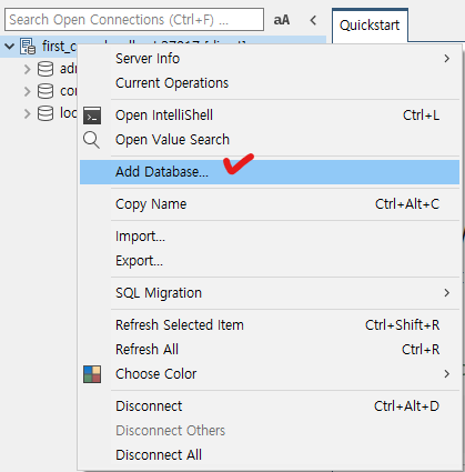 connection 쪽에 우클릭 > Add Database