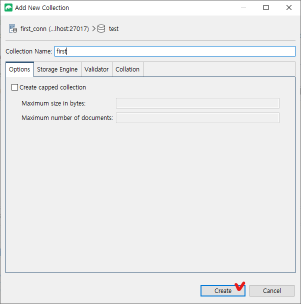 collection 이름을 입력하고 생성한다.