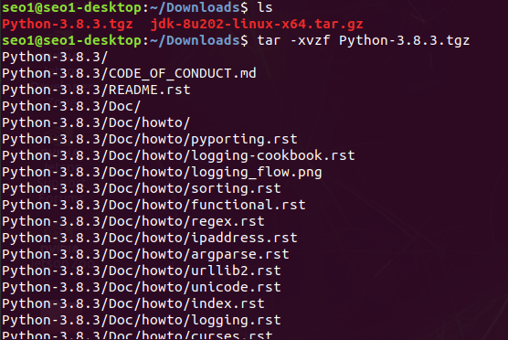 (명령어가 실행되지 않으면, 명령어 맨 앞에 sudo 입력해서 다시 실행해 본다. ex. sudo tar -wvzf)