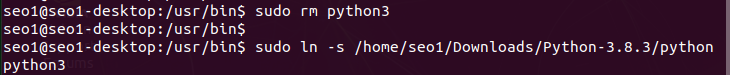 sudo ln -s /home/seo1/Downloads/Python-3.8.3/python python3